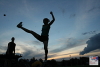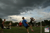 A member of a volleyball team showing her footbag skills. Photo by Tms Tyrpekl.