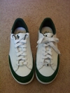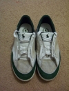 Here's a top view of the shoes before I modified them. The leather was REALLy slippery. I'm not actually sure of the name of these shoes. On the polo website the closest shoe I could find was the brisbane. However, on the shoe box it says "Diana white/green leather" So apparently these shoes are actually called Diana. Slick. . Photo by Rory.
