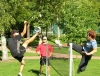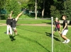 Matti Pohjola (left) does a flying mousetrap whilst Tapio Karhunen (right) tries to block it. Shot from the open doubles final match, which Pohjola and Oskari Forst?n (front) won in three games. Photo by Matti Pohjola.
