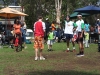 Ken kicking with some kids while others watch on. Photo by Jeremy O'Wheel.