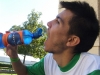 Ken drinks a refreshing alcoholic beverage while playing footbag. Photo by Jeremy O'Wheel.