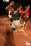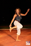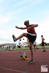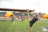 Caro from Canada hitting a trick with a 32 panel footbag. Photo by Tms Tyrpekl.