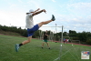 A member of a volleyball team doing a flying kick. Photo by Tms Tyrpekl.