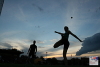 A member of a volleyball team showing her footbag skills. Photo by Tms Tyrpekl.