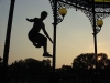 Generaly I do not like taking staged or posed pictures of people. I like to shoot while things are happening, on the go. Tom suggested I take shots while he jumped off the railing of this gazebo at a nearby park. He's doing a flying clipper. It's a shame you can not see the footbag. It's a cool picture with varying shapes and texture despite the limited color. Photo by Alex "Zeke" Ibardaloza.
