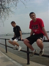 In the first takedown I ambushed him and got him in a high firemans carry. I jogged over to the grass with him on my shoulders and dumped him on his back. I attacked his right arm and tried to lay back for an armbar but he was expecting it and quick to react. He popped back up and tried to lean over me so I released his arm turned my hips and grapevined his left leg and finally submit him in a kneebar. Just for the hell of it I changed it to a figure 4 ankle lock. Photo by Alex "Zeke" Ibardaloza.
