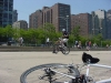 We try not to set up our circles near the ends of the skaters cones. They zig-zag in and out of there fairly quick and I I've seen several collisions with careless poeple who get in the way. Probably one of the first things you learn is to give these guys their space and to ALWAYS watch where you are walking/skating/biking. Photo by Alex "Zeke" Ibardaloza.