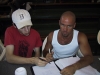 Teaching is clearly a passion for Ales, and Felix is a great student. Needless to say much shredding ensued. Photo by Steve Goldberg.
