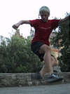 Yes, Vasek's real name is Vaclav, which is Czech for Wenceslas (or the other way around). Anyway, here is an attempt of mine to capture him doing a flying clipper in front of some random castle-like building at a park in central Budapest. So much for that. But at least he looks cool. That's what's important. Photo by Steve Goldberg.