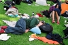 Here be the freestylers from Footjam 2004, lying around on the grass sunday morning after the big party saturday night. Photo by Andrew T. Grant.