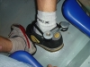 Jere celebrated his success in the Video competition so hard that he woke up with a bike lock on his ankle. He's still looking for the key. Photo by Ville Laakso.
