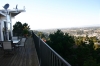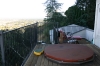 This is the south end of the deck, which as you can see has a built-in hot-tub (!!) and a sun deck dead ahead. The sun deck is actually a roof-deck on top of the two-storey garage structure. The reason for it is that the sun tends to only be on the main deck area until after lunch, then in the afternoon it's too far to get to the deck. So this extra little deck is just for getting sun in the afternoon. It's too hard to see in this photo but part of the green area in the distance is Stanford University with Redwood City in the foreground.