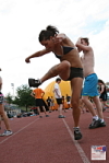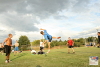 Caro from Canada hitting a trick with a 32 panel footbag. Photo by Tms Tyrpekl.