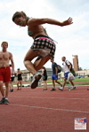 A member of a volleyball team showing her footbag skills. Photo by Tms Tyrpekl.