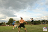 Antonio Fritsch of FC Footstar Berlin spiking on living legend Tuan "Disko Ninja" Vu. Photo by Tms Tyrpekl.