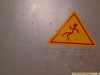 We were traveling to a contest by train, and someone just draw a "bag" on this "Try not to fall out" sign. Photo by Gyorgy Gosi, Lurko.