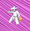 The shading on the characters would be kept simple as well using a darker tone for shadows. The actual costume used aluminum foil for the hat and bands, It would have driven me crazy to replicate that look so I went the simple smooth metalic route. I'm actually very happy with the look, it's subtle but I think it still gives depth and texture. The electricity was done by drawing thin white lines then outlined with green. Photo by Alex "Zeke" Ibardaloza.