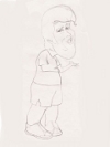 After I have the finished pencils I placed a sheet of marker paper over it and traced a copy of the charicature using a light colored water based marker. Then I colored the figure in with design marker and did the final outline with a fine tipped black marker. This whole process took about an hour. You might be able to see some mistakes and smudges on this image like where I added the red bracelet over the left wrist and the slight smearing on his cheek. Photo by Alex "Zeke" Ibardaloza.