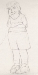Some of the drawings were done as one single form while others were done with the head seperate from the body. I didn't have a difinitive idea for all the characters poses and expressions so I worked on them as they came to me. Here the arms were modeled different from the concept sketch to show more expression and the body was turned in the other direction to help balance out the group composition. Photo by Alex "Zeke" Ibardaloza.