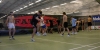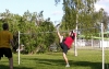 Samuli Viitanen tries to serve, but Ilkka Malin blocks. Notice the semi-official field! . Photo by Justin Sexton.
