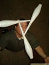 "Dug?" balancing 3 clubs put together as a crown. Photo by Gergo Csallo.