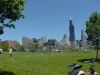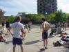 Tim Werner (green hair with back turned) warming up with some of the net players. The site was located just outside Chicagos Loop area with a great view of the skyline. . Photo by Alex "Zeke" Ibardaloza.