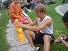 Samuel and most of the swiss team lived in the cottage next to us at the Rastila Camping site. Samuel had some weird thing to show for every morning. Photo by Ville Laakso.