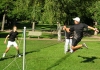 Matti Pohjola (left) does a flying mousetrap whilst Tapio Karhunen (right) tries to block it. Shot from the open doubles final match, which Pohjola and Oskari Forst?n (front) won in three games. Photo by Matti Pohjola.