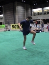 We caught up with the Quizno's inflatable cup guy who handed out hundreds of coupons all over McCormick Place! He was kicking a footbag. Photo by Scott Davidson.