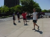 Tim Werner (green hair with back turned) warming up with some of the net players. The site was located just outside Chicagos Loop area with a great view of the skyline. . Photo by Alex "Zeke" Ibardaloza.