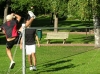 Jaakko Inkinen proving he can place the bag whereever he wants. Inkinen won the open singles title, making it his first ever open title. Photo by Matti Pohjola.